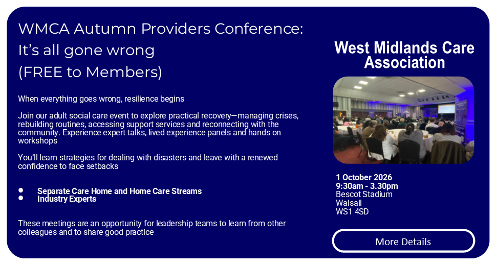 WMCA run several large scale conferences each year, aimed at Care Homes and Domicilicary Care providers. They are a great opportunity to network with other providers and meet representatives from local authorities, health and suppliers from across the West Midlands.
